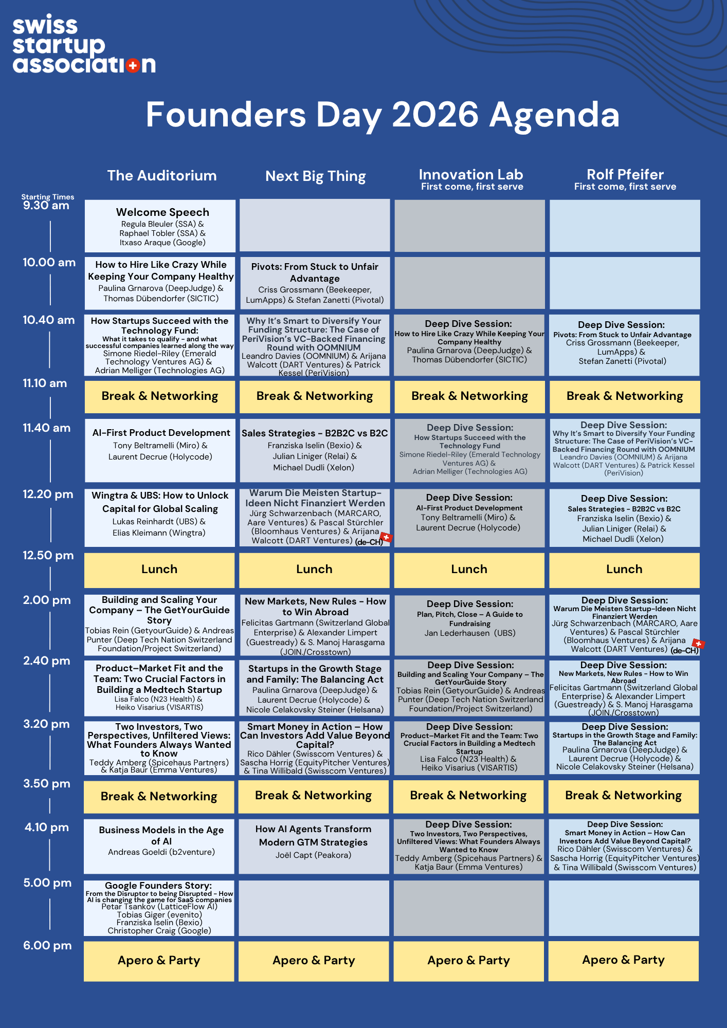 To keep the discussions relevant and valuable for everyone, participation is limited to startups that fulfill the following criteria.* - Price: This event is free of charge but exclusively open to Swiss Startup Association Premium Members. Not a member yet? Join us here